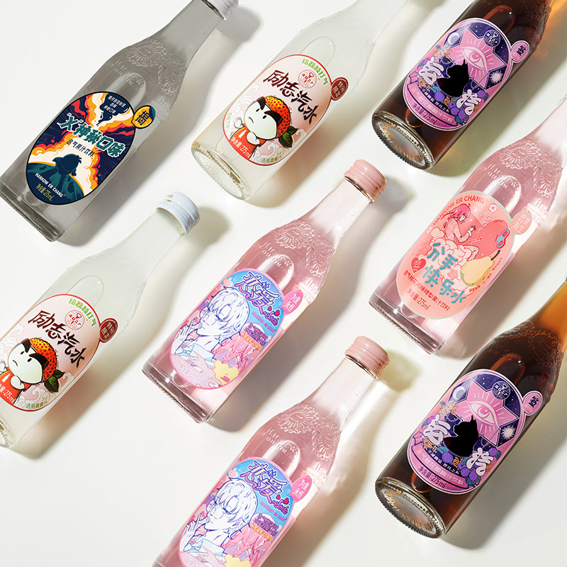汉口二厂 【8瓶全家福】樱花荔枝酸梅玻璃瓶含气果汁饮料 275ml*8瓶